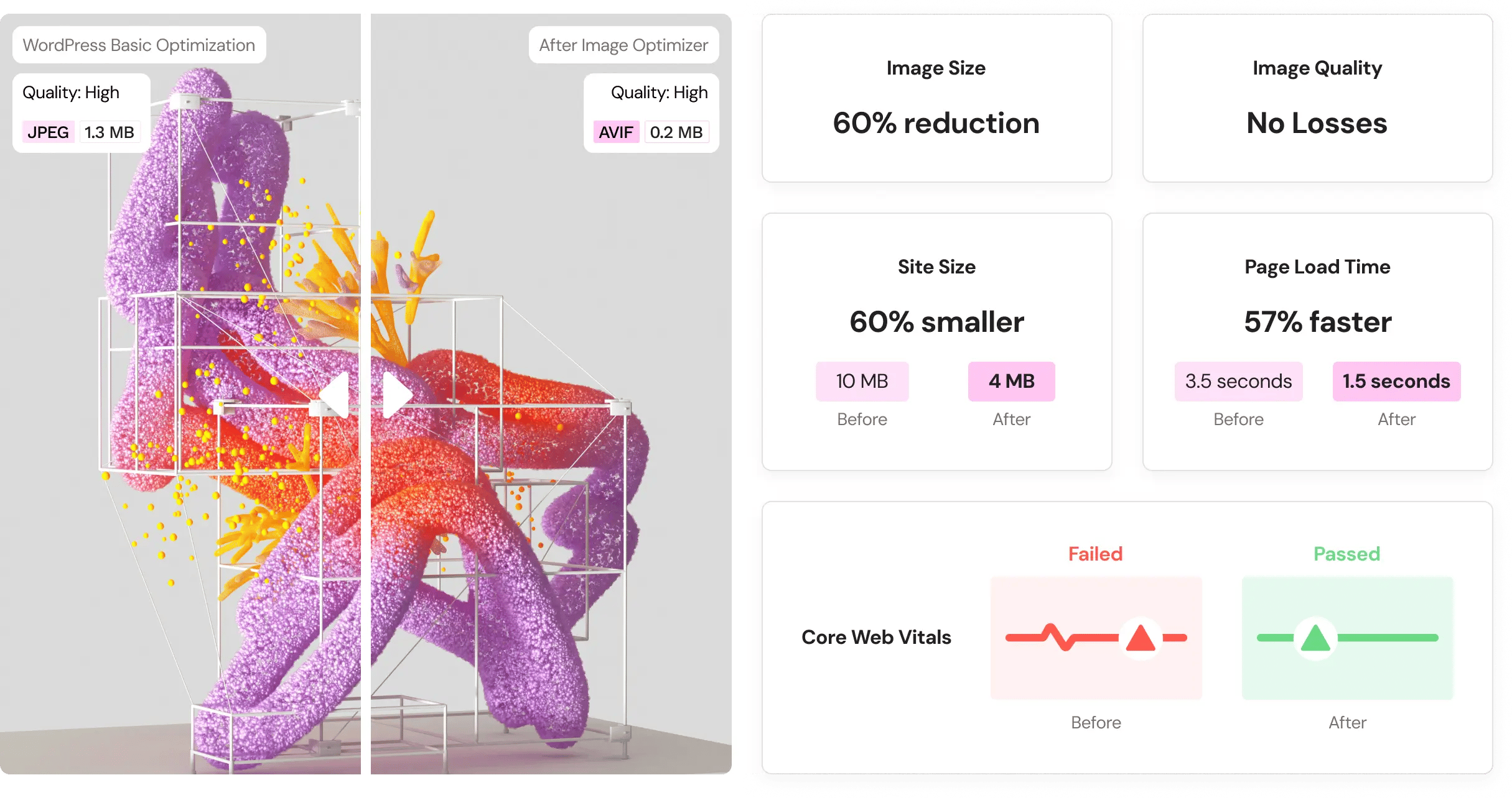 Die Optimierung von Bildern kann die Ladezeit deiner Website erheblich verbessern, was für das Nutzererlebnis und die Suchmaschinenoptimierung entscheidend ist. Es reduziert die Größe deiner Bilder, ohne ihre Qualität zu beeinträchtigen, was zu schnelleren Ladezeiten und besseren Leistungswerten führt.
