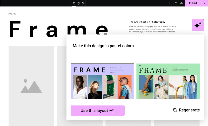 Guided by the brief, AI will then create key wireframe pages and sections, ready for you to customize.