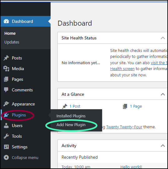 - In WP Admin, navigate to Plugins>Add New Plugin.