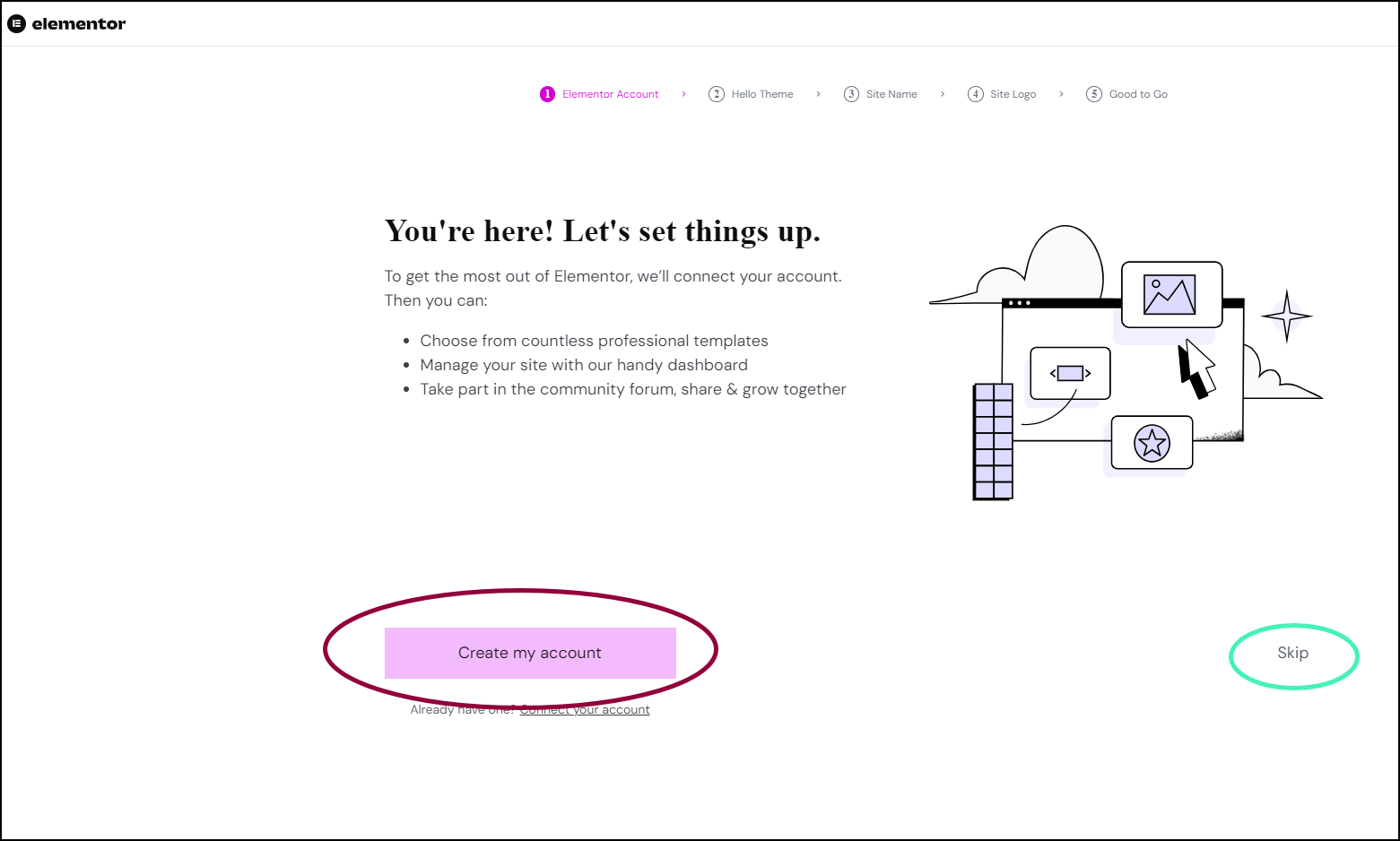 Create an Elementor account