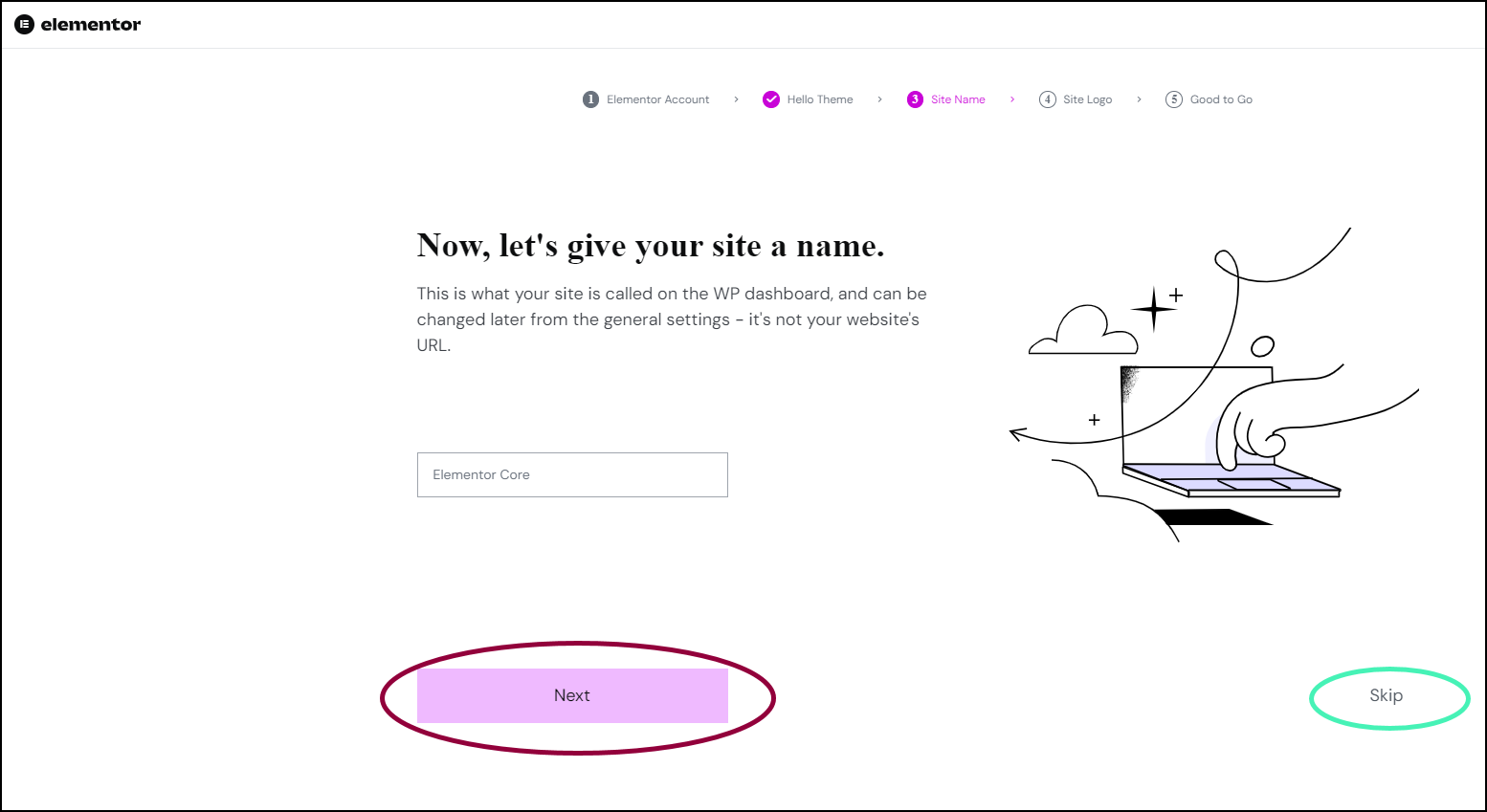 - If you want to keep your current site name, click Skip.