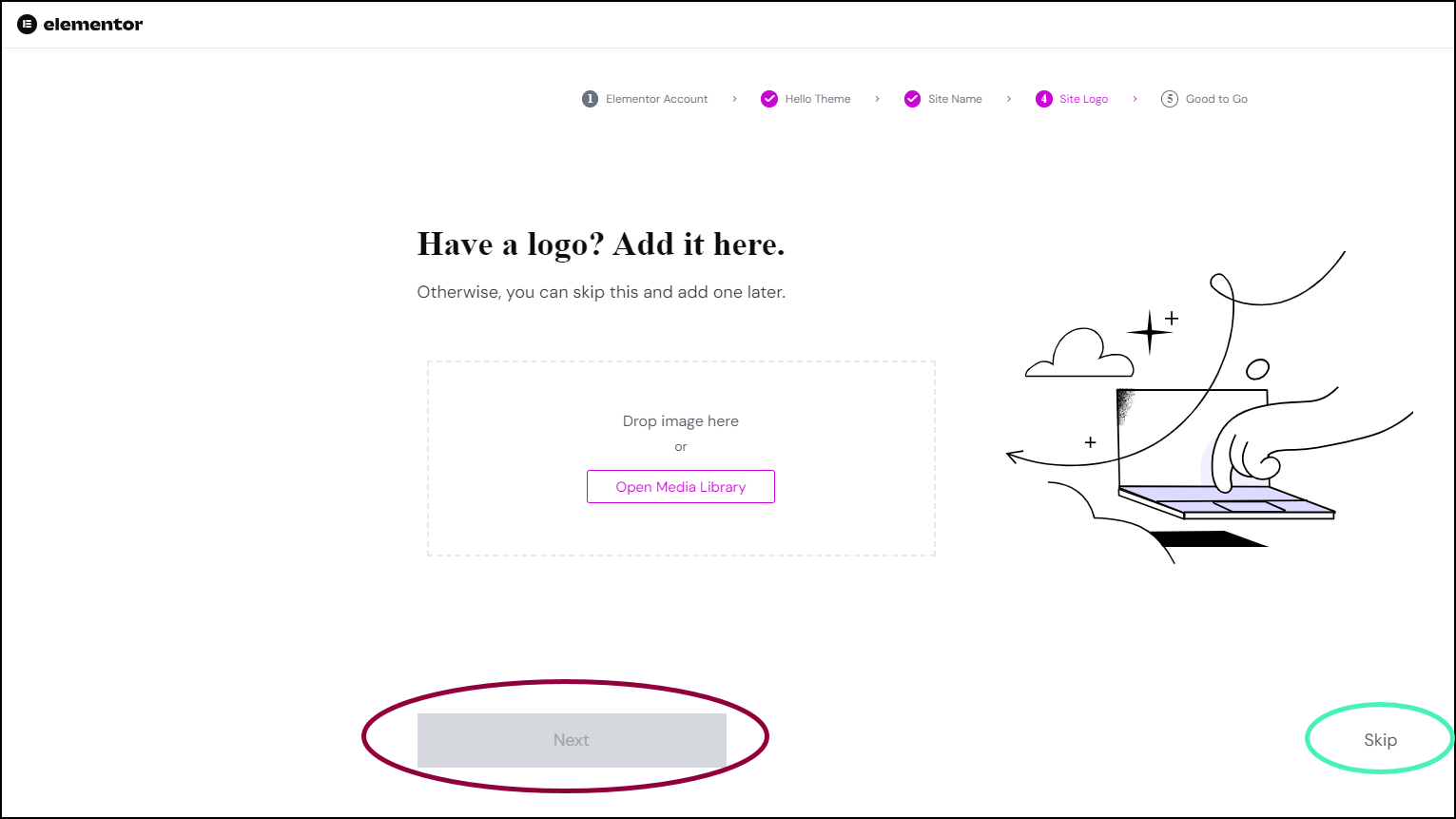 - If you don’t have a logo, click Skip.