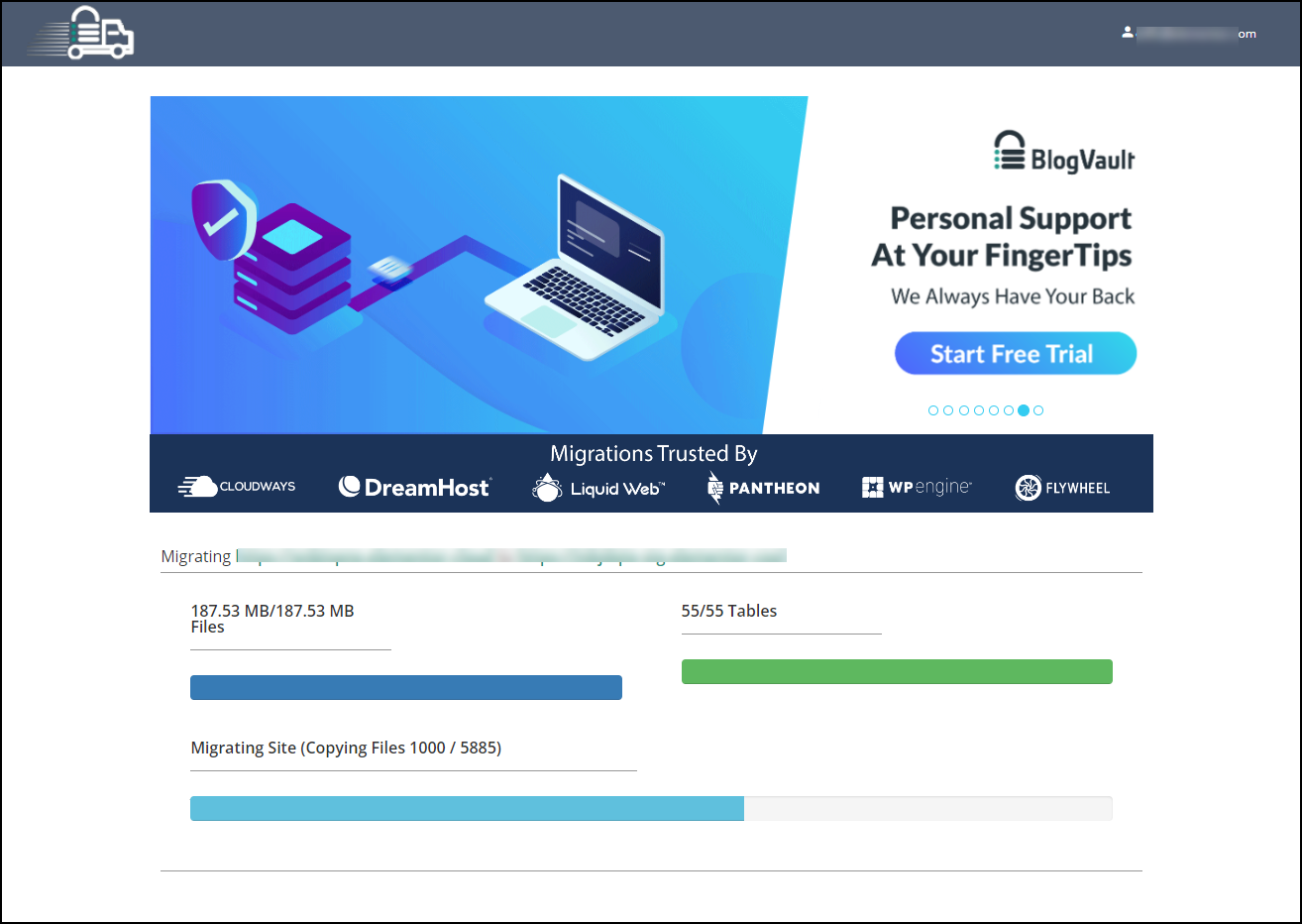 - In the right panel, click Migrate your site.