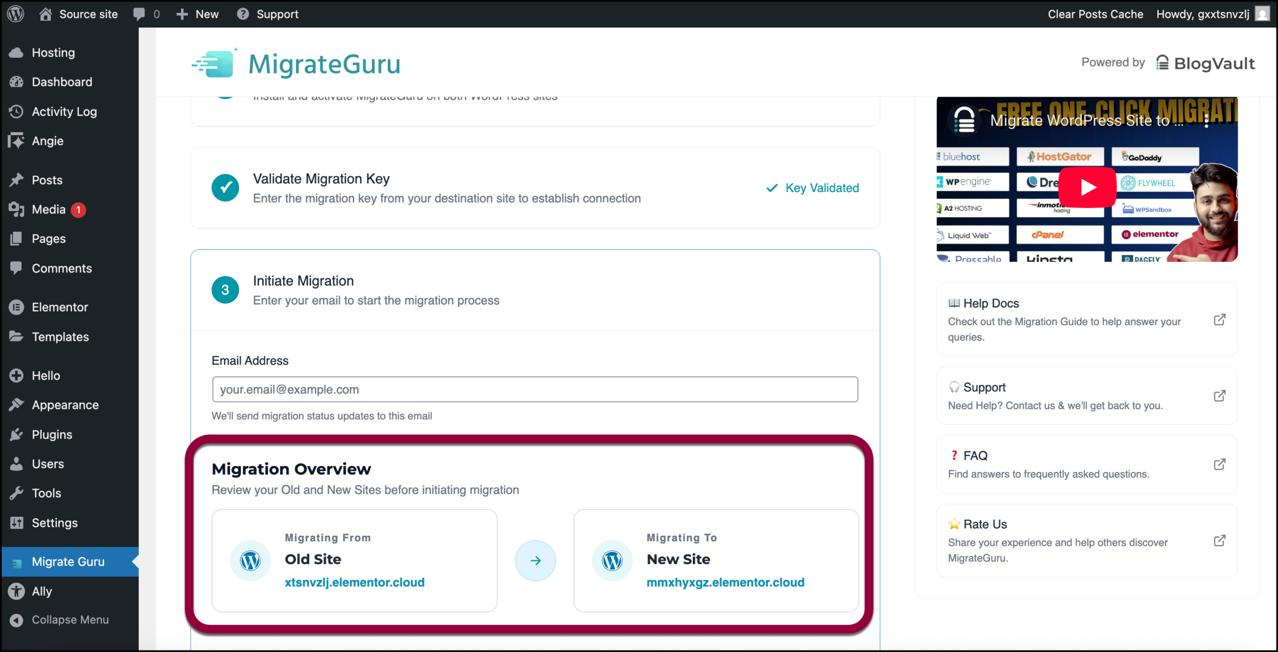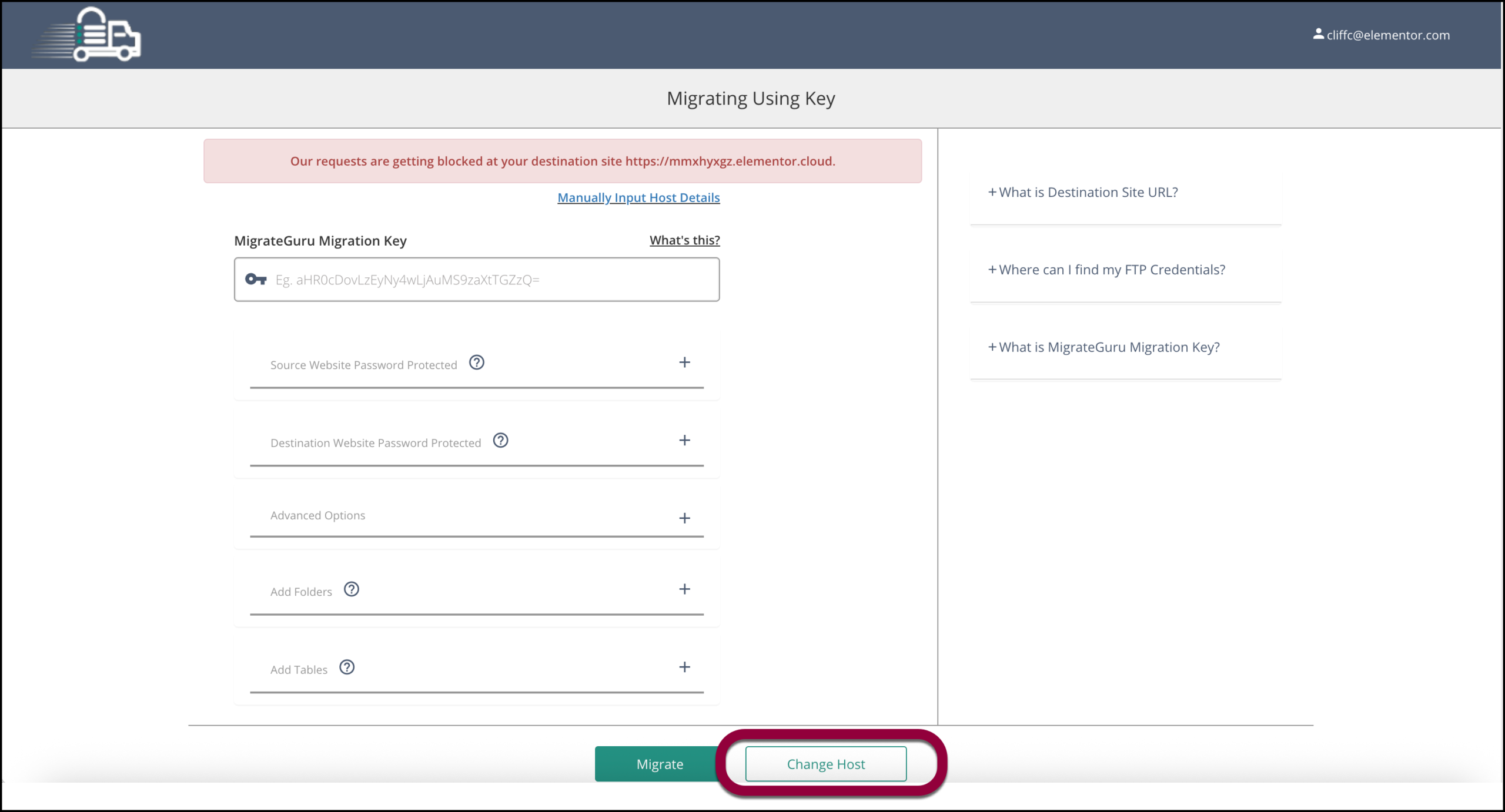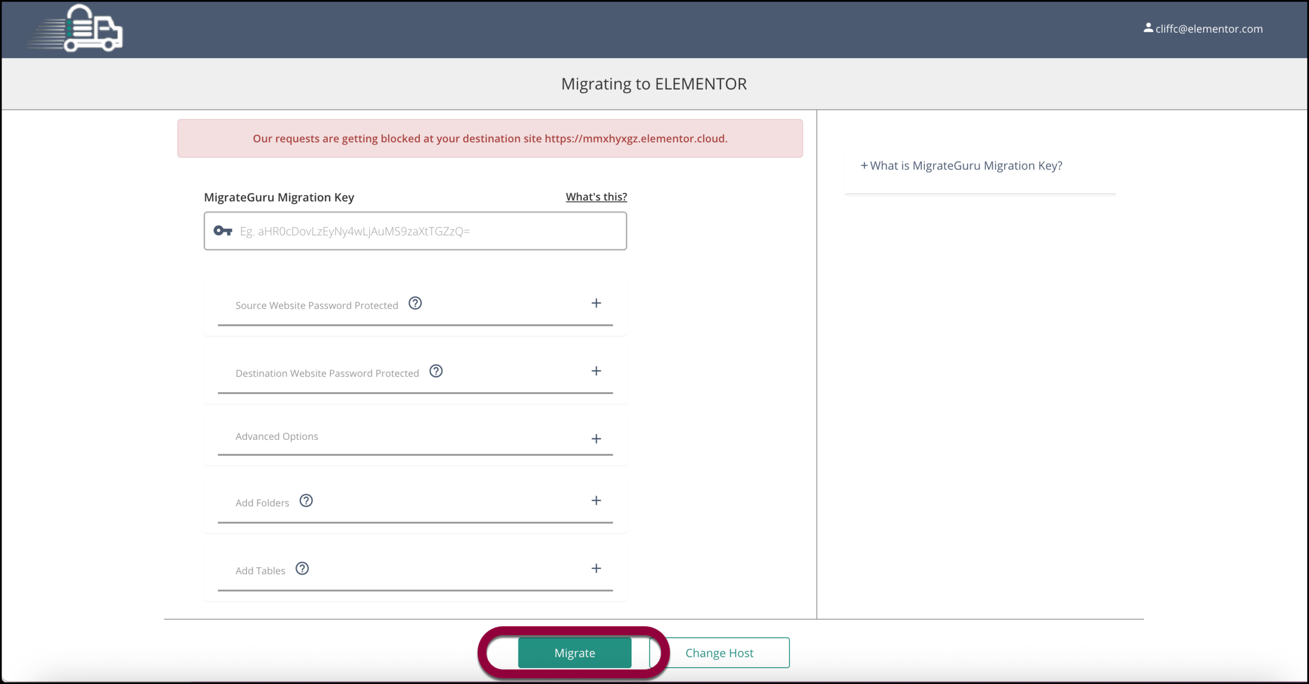 If you don’t receive an email, there may have been an error or you may have missed a step. You may have to redo the migration process. See the section on migrating an existing site to an Elementor Host site below.