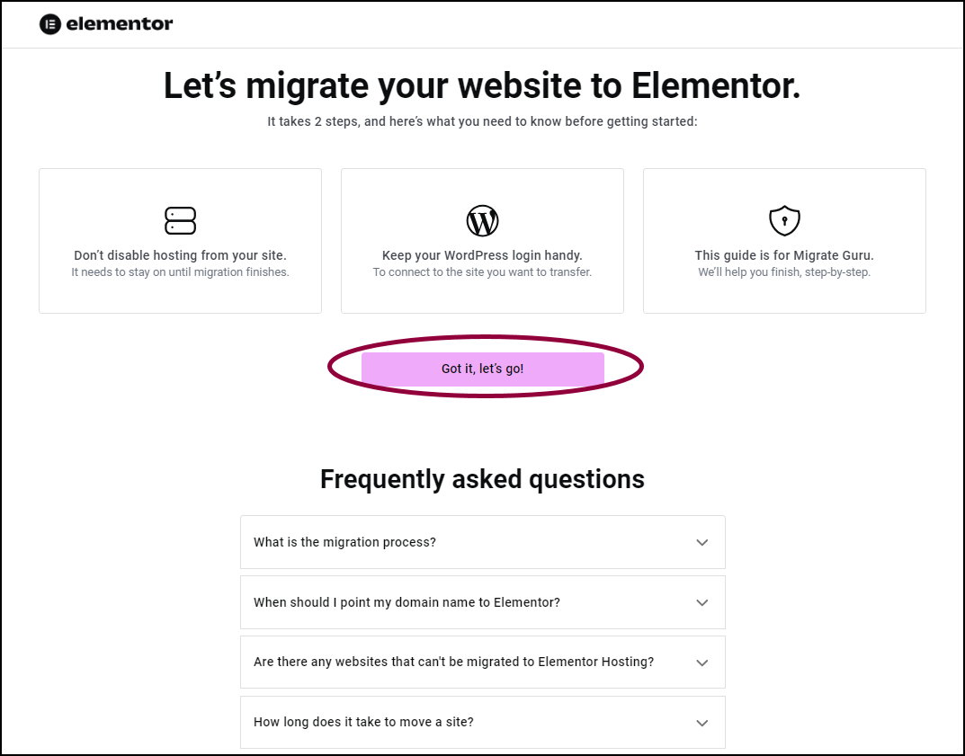 One of the greatest challenges to switching site hosts is migrating your site. Use Migrate Guru to migrate your site to Elementor Host, simplifying and speeding up the process.