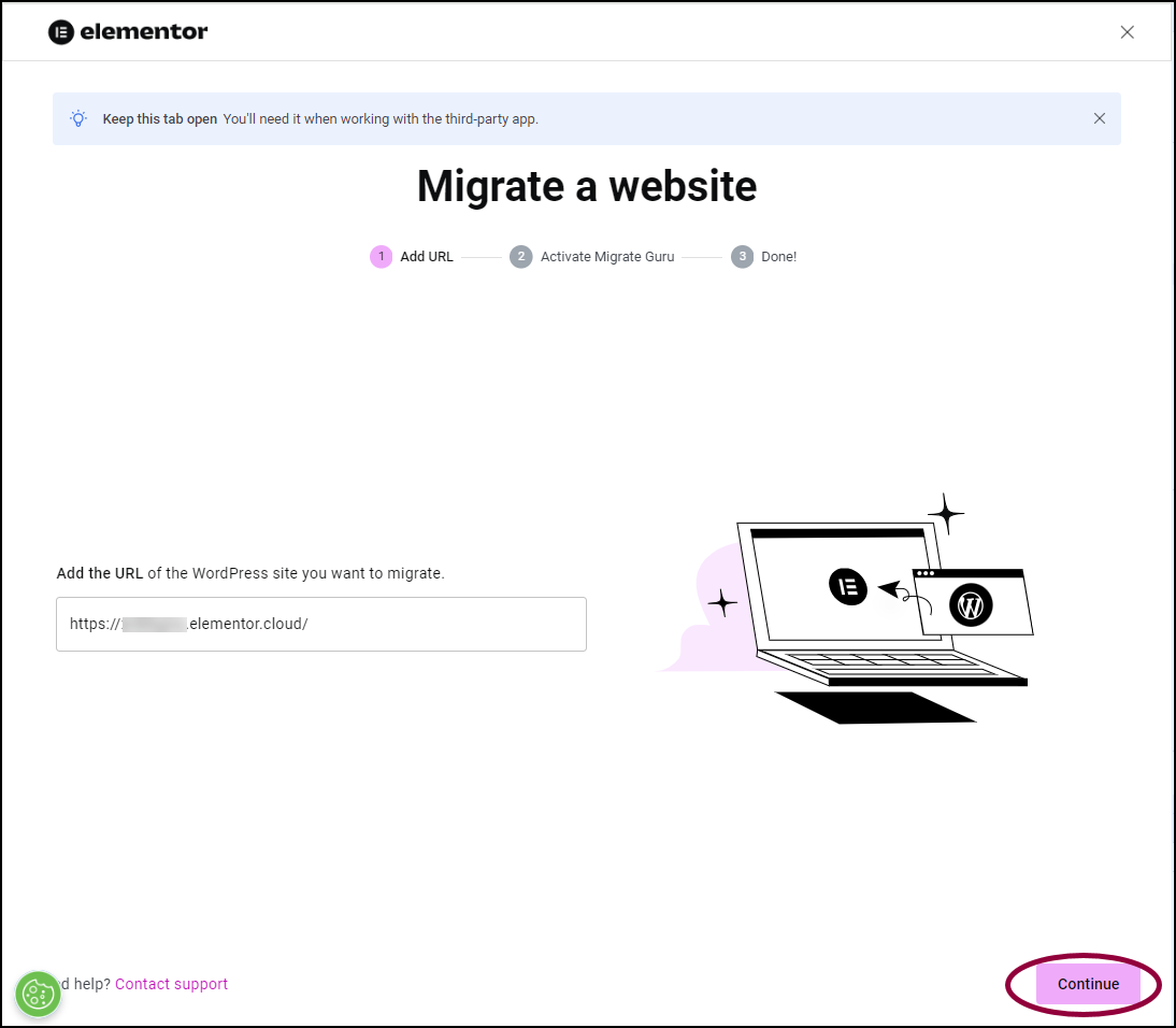- Go back to the Migrate a website tab.