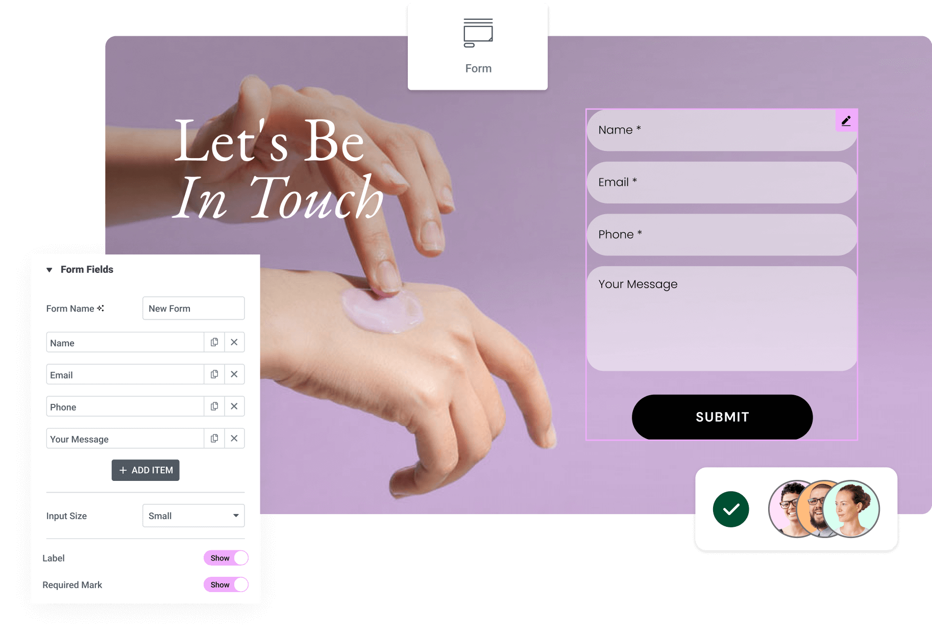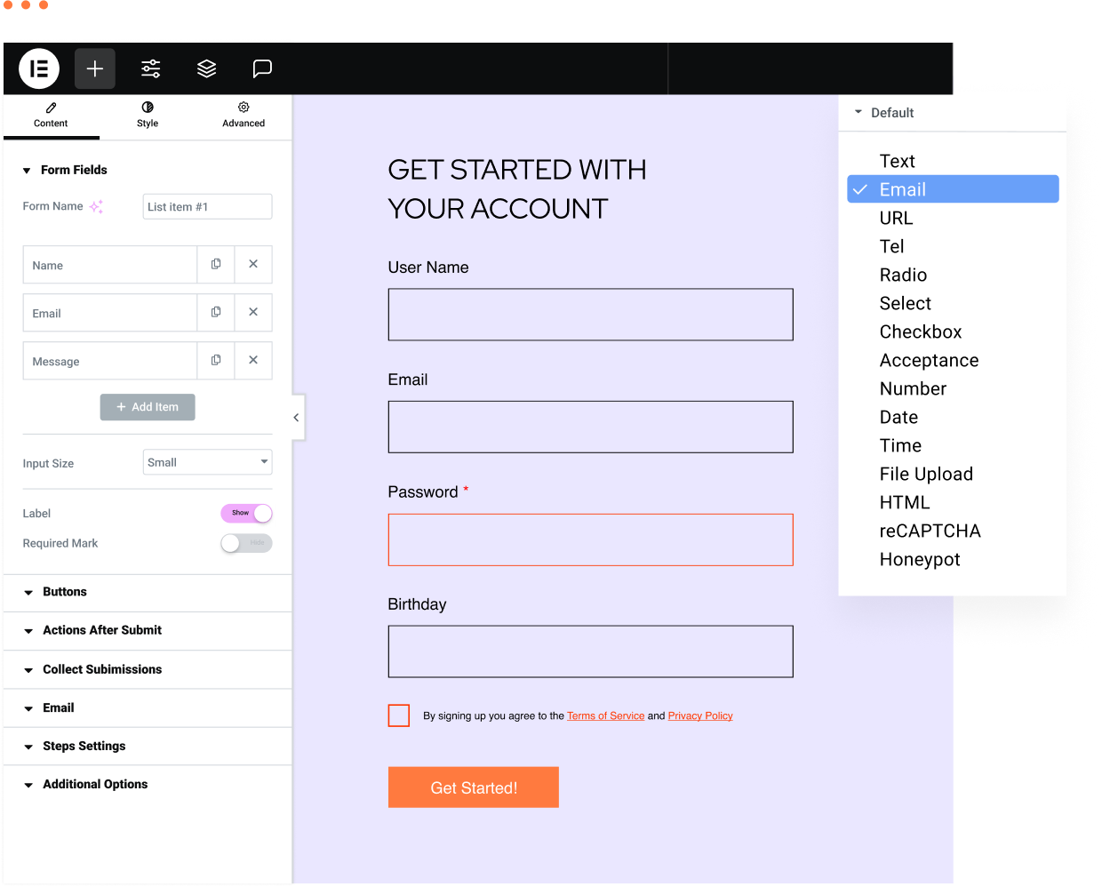 Create an unlimited number of forms with Elementor. Add the fields you need and customize them to perfectly fit your page.