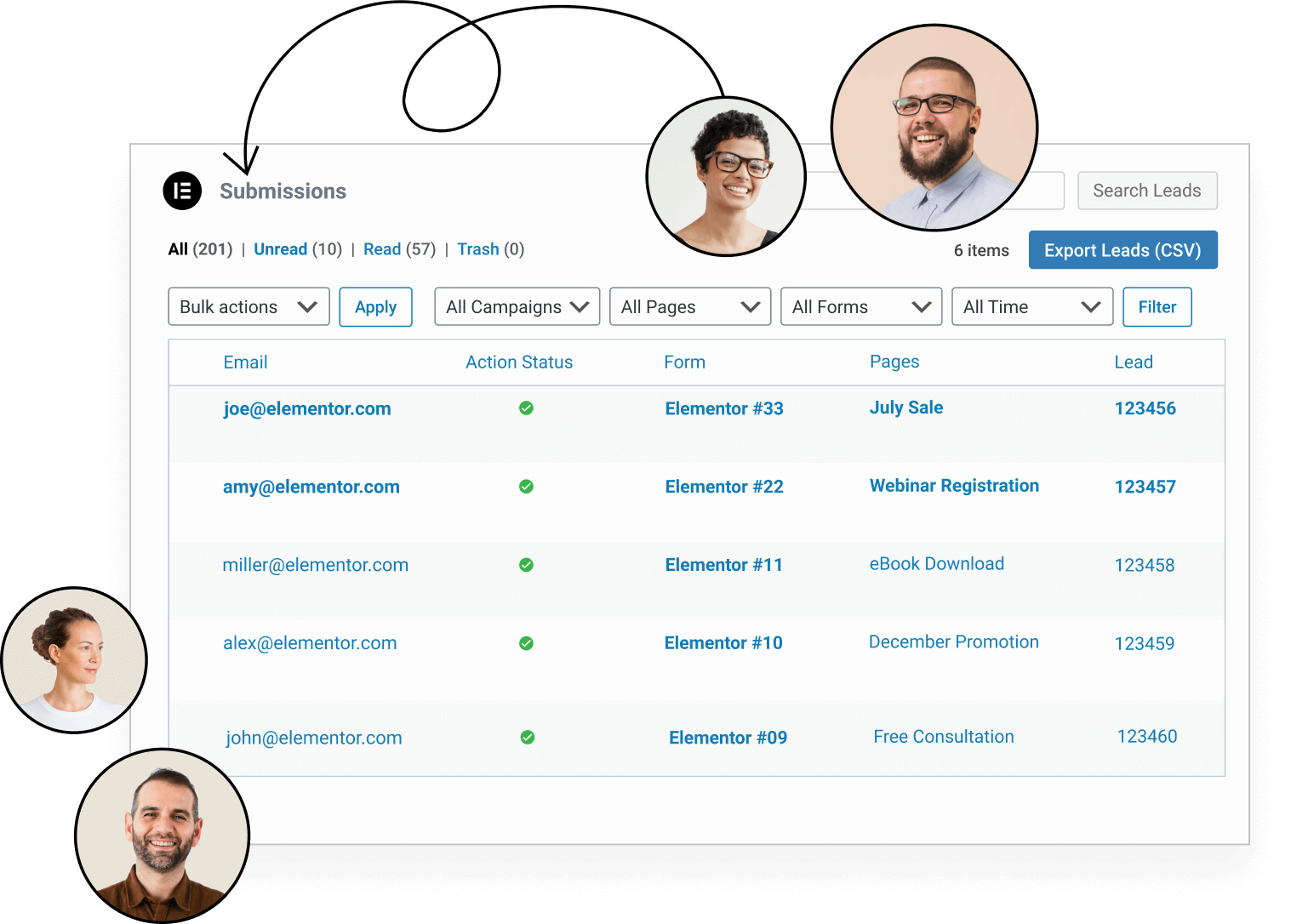 Manage your visitors’ data from your Elementor account or easily integrate your marketing and CRM tools.