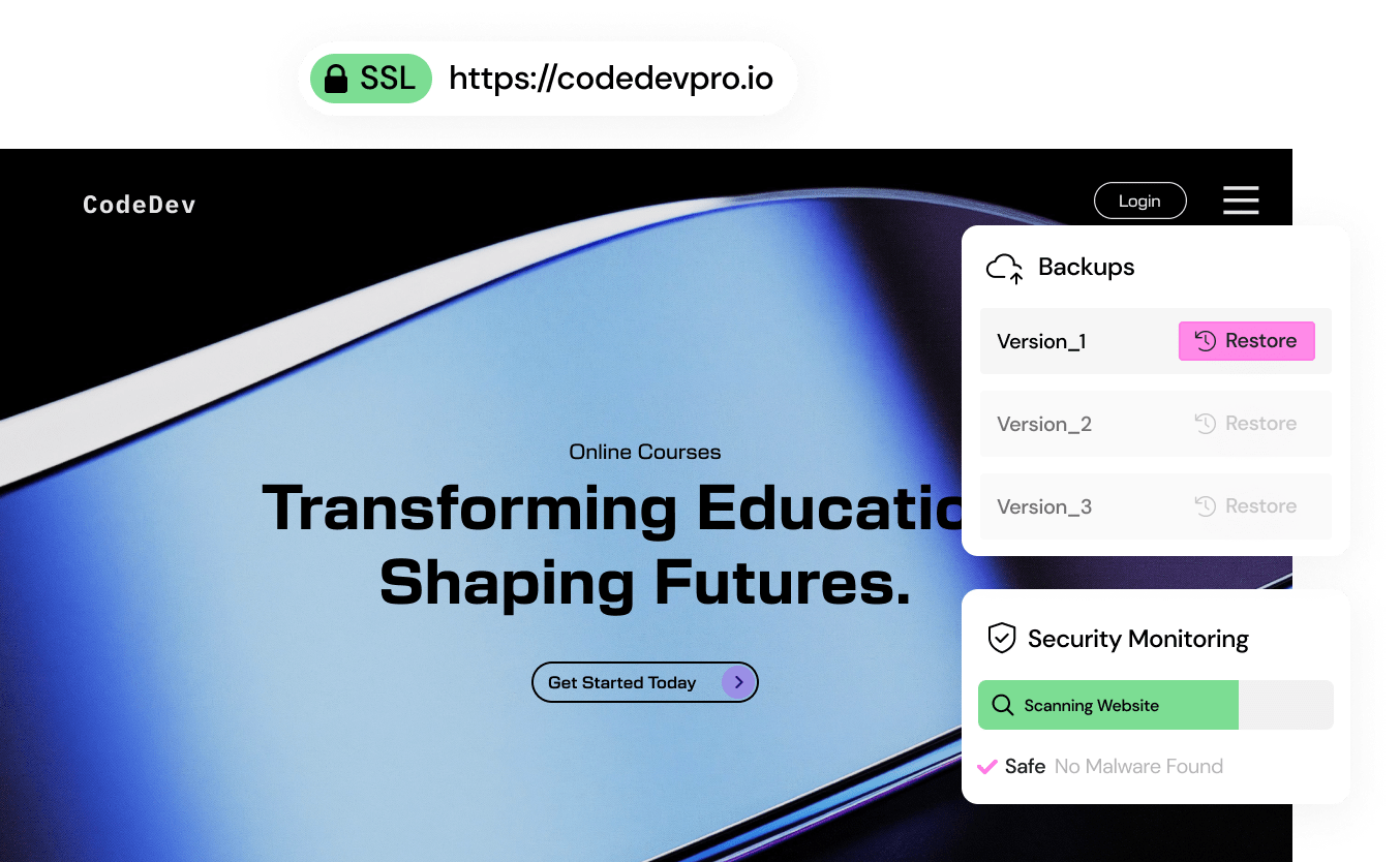 With Elementor hosting your websites get enterprise grade security that’s monitored by cyber experts to ensure a smooth, safe and secure online experience for you and your site visitors.